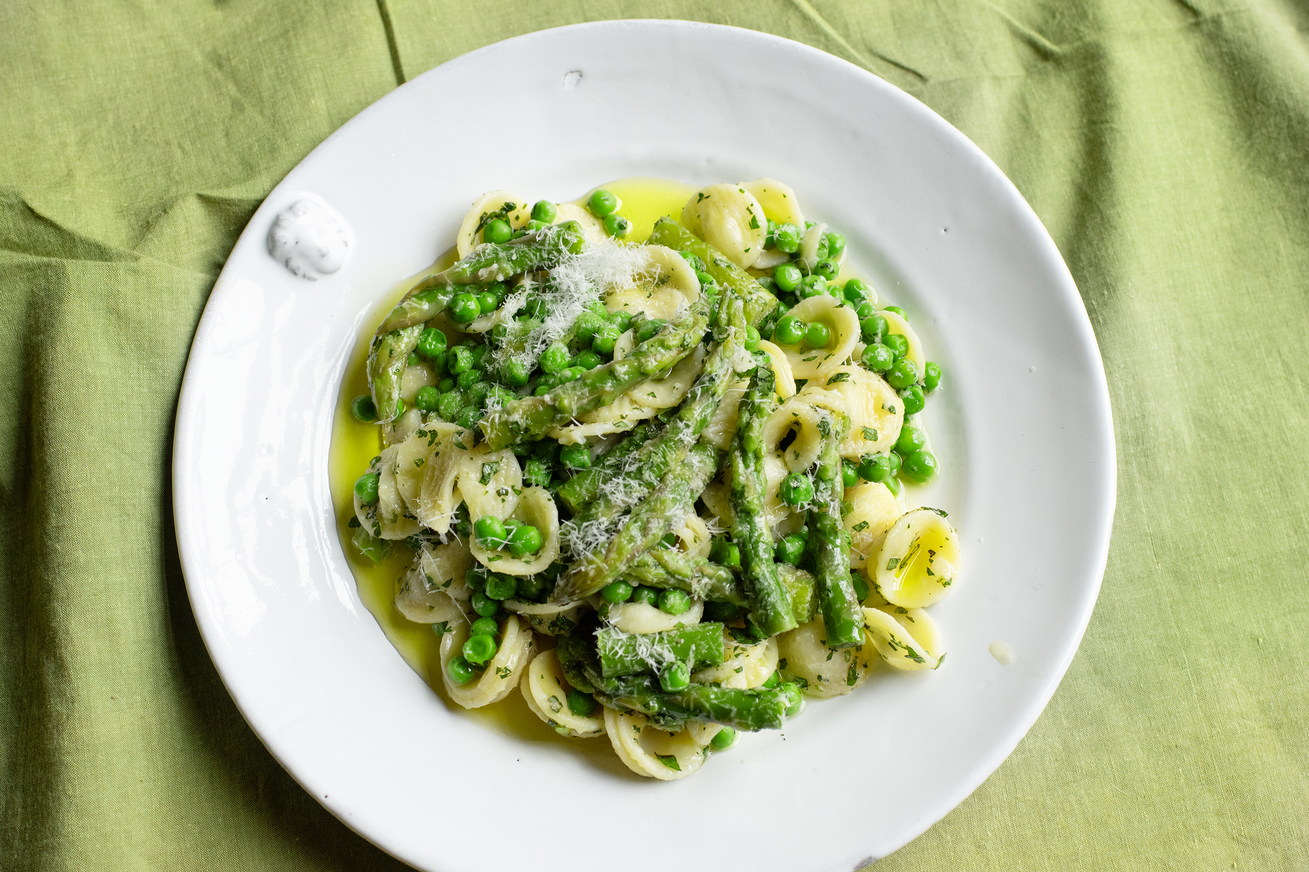 You could also use tiny broad beans (the first of the season, mostly coming from Italy) in place of the peas. If they are really small and sweet, they will take but a few minutes to cook. Serves 2-3. Ready in 15 minutes