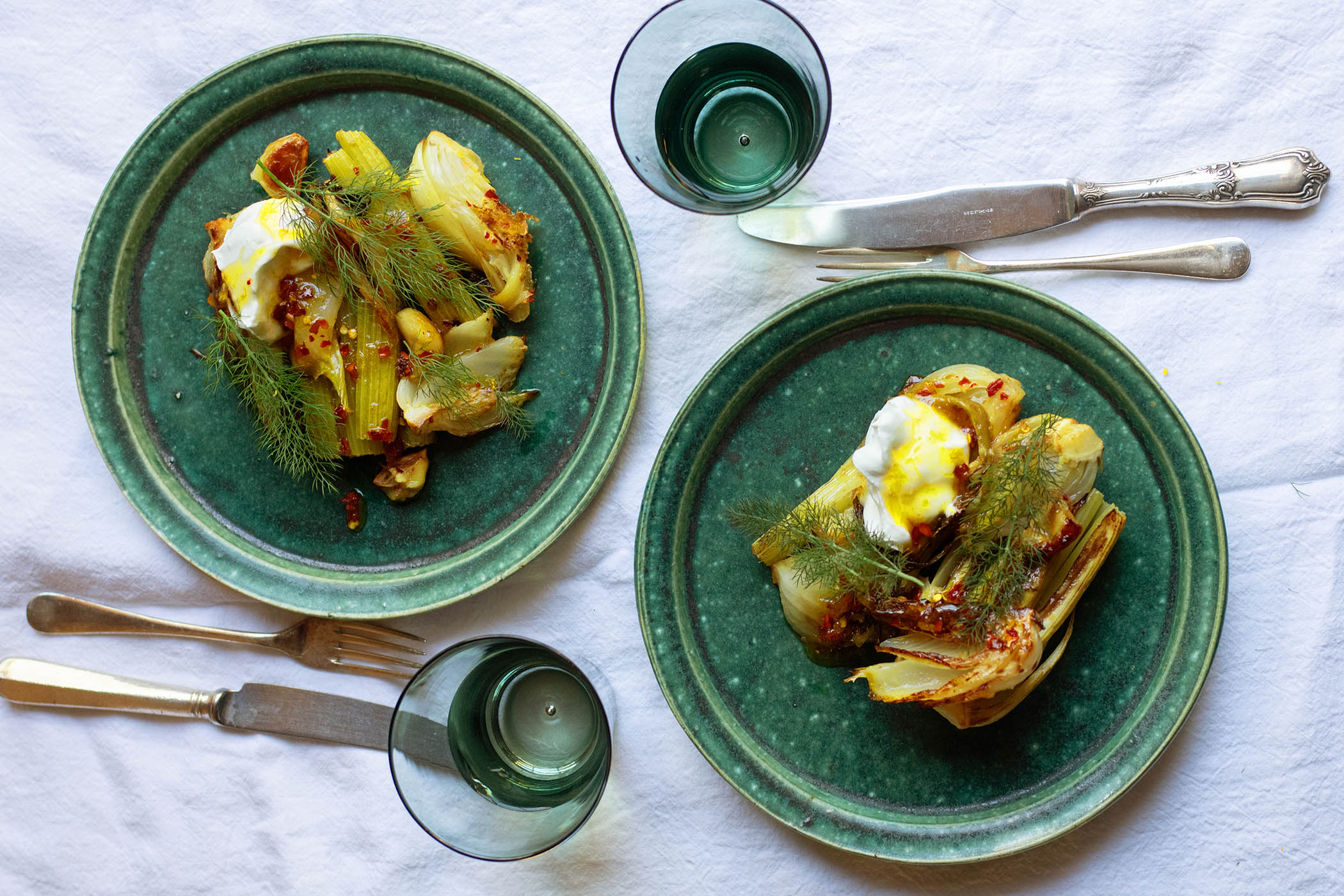 Roast fennel and celery with yoghurt and honey