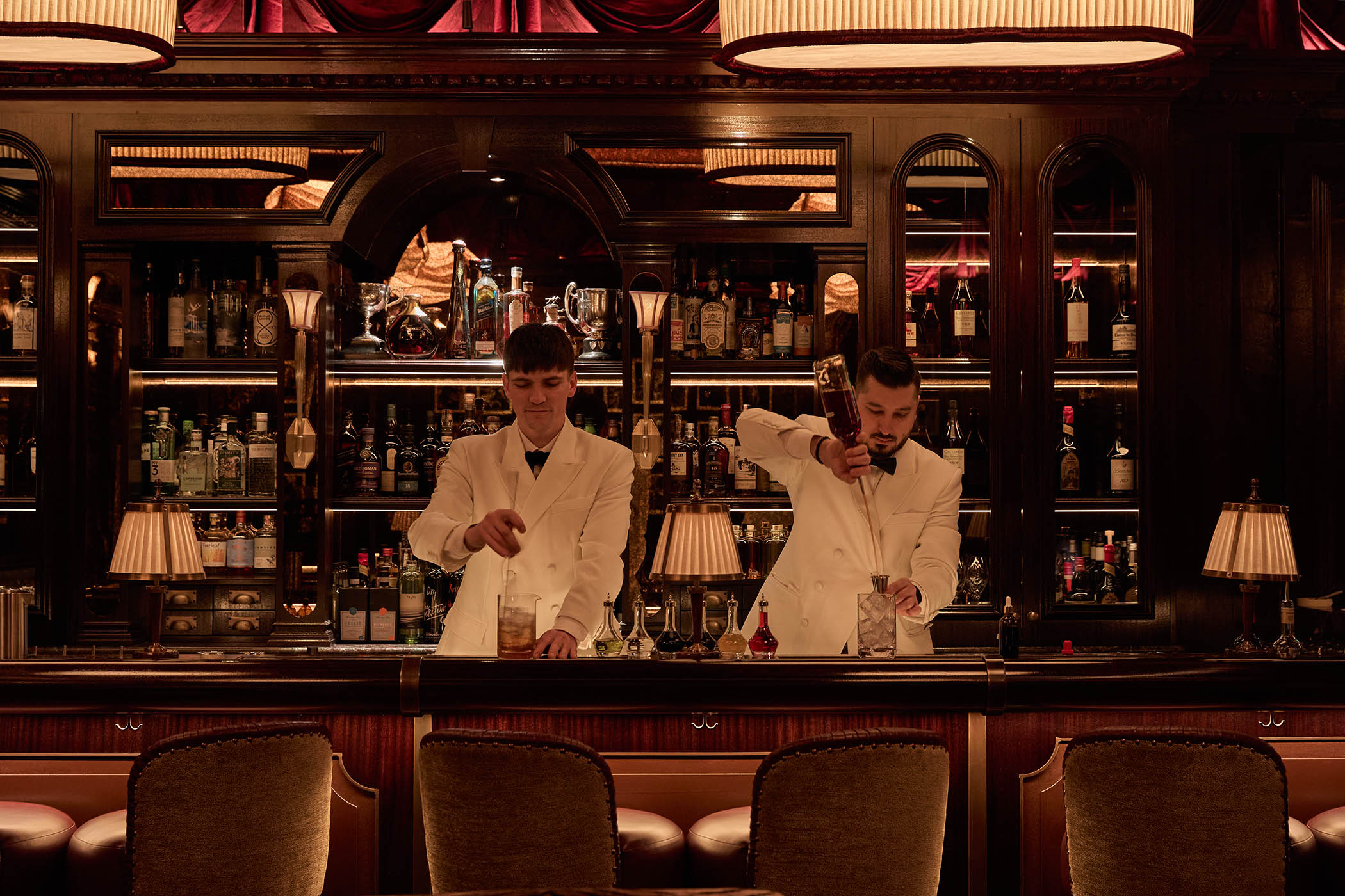 Since he worked at famed West End brasserie Joe Allen in the 1970s, Jeremy King has loved both restaurants and the theatre. So when, after a 25-year pursuit, he secured the grand and storied restaurant Simpson’s in the Strand, he knew he wanted it to contain a classic Theatreland bar. It had to feel a little “late night”, comfortable and slightly club-like. “To be frank,” King says, “it had to be somewhat mysterious and sexy.”