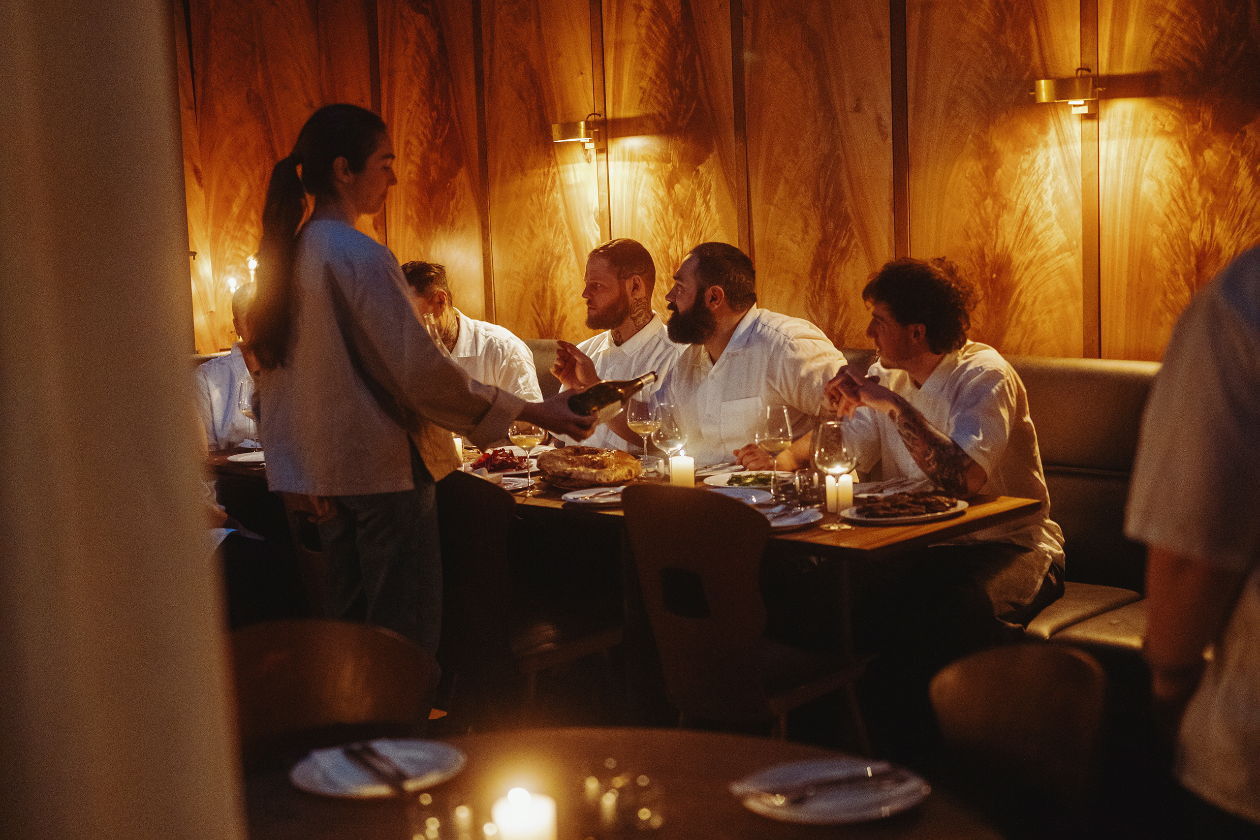 Crittenden serves as he cooks in the tiny space, with its superhero illustrations that will be familiar to Stark diners (Ben owns the lease here, and helped Luke with the fit-out). He says he wants the restaurant to feel like you’re going round to his for dinner – and on our first visit, we hear large chunks of his life story and end up with his 11-year-old rescue chihuahua Sparky sprawled on my partner’s lap, giving come-hither side eye. “I struggle not to say what I think,” says Crittenden. “I just come out with what people call ‘Luke-isms.’”