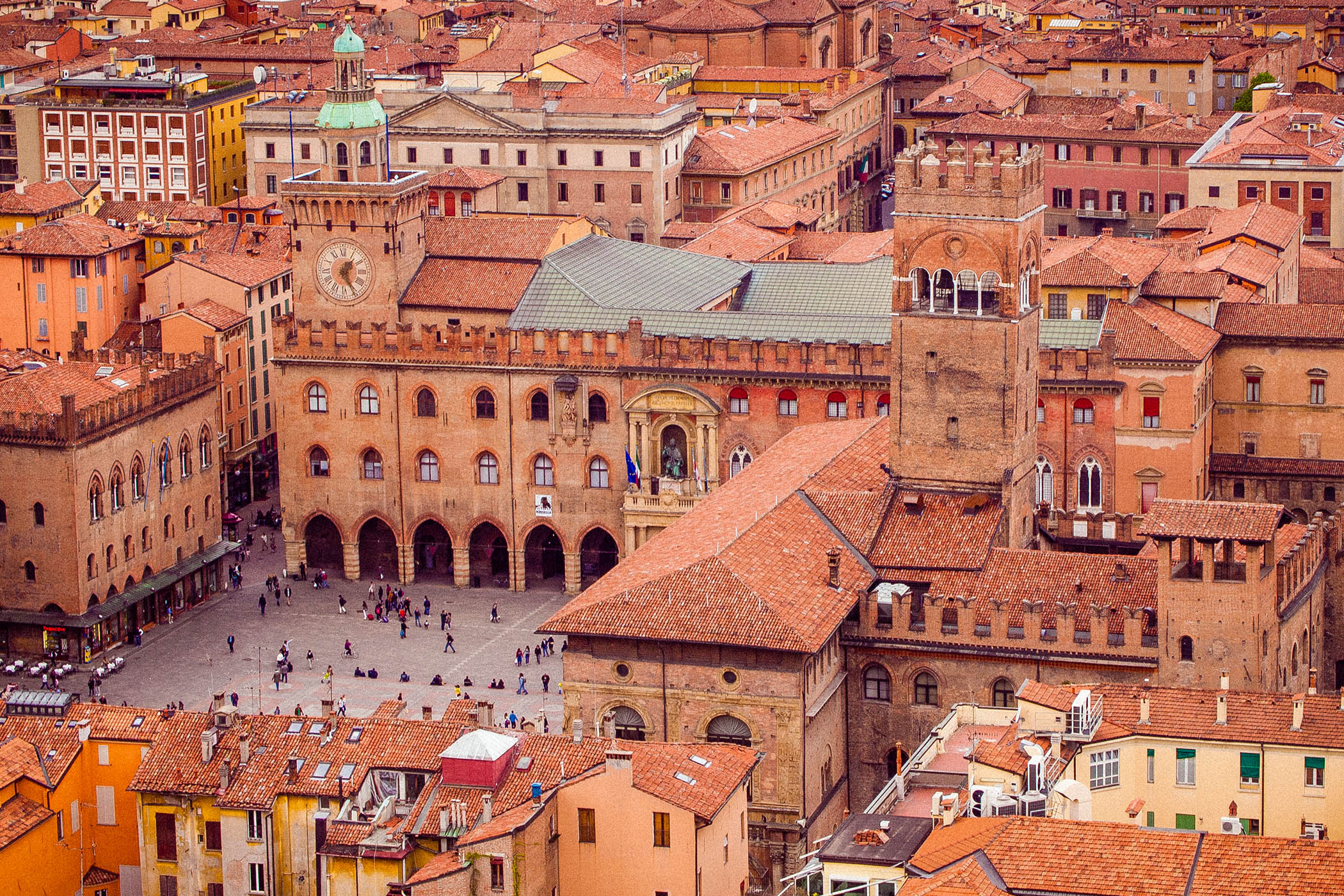 Friday midday: Get your bearings Head straight to the city’s heart, Piazza Maggiore. Climb up the medieval clock tower, or Torre dell’Orologio, for views across rose-pink rooftops to the green hills beyond.