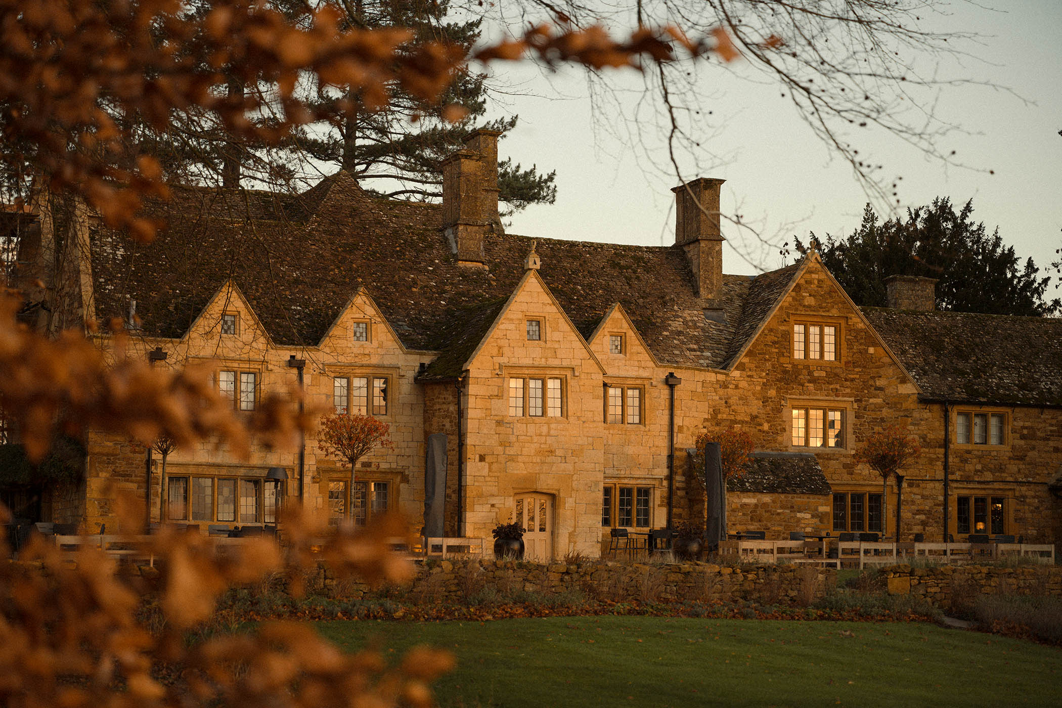 Here is a 14th-century manor house set in 60 acres of meadow. A quick taxi ride, all stone walls and hedges, from Moreton-in-Marsh station. When you approach the entrance the drive curves up elegantly towards a terrace, majestic trees, lit and welcoming windows.