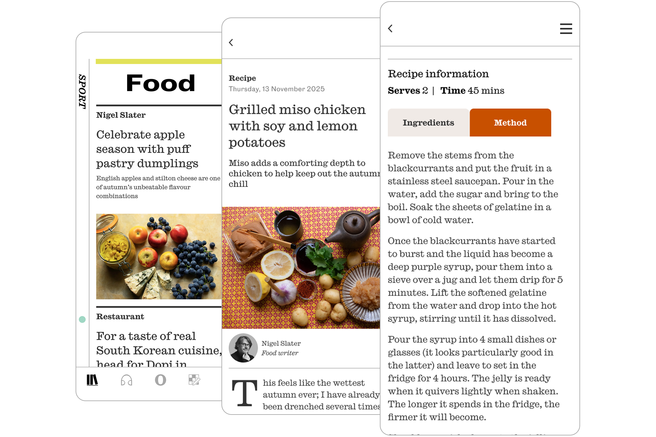 Choose your next meal with recipes from Nigel Slater, and all of the Observer Food Monthly’s food journalism