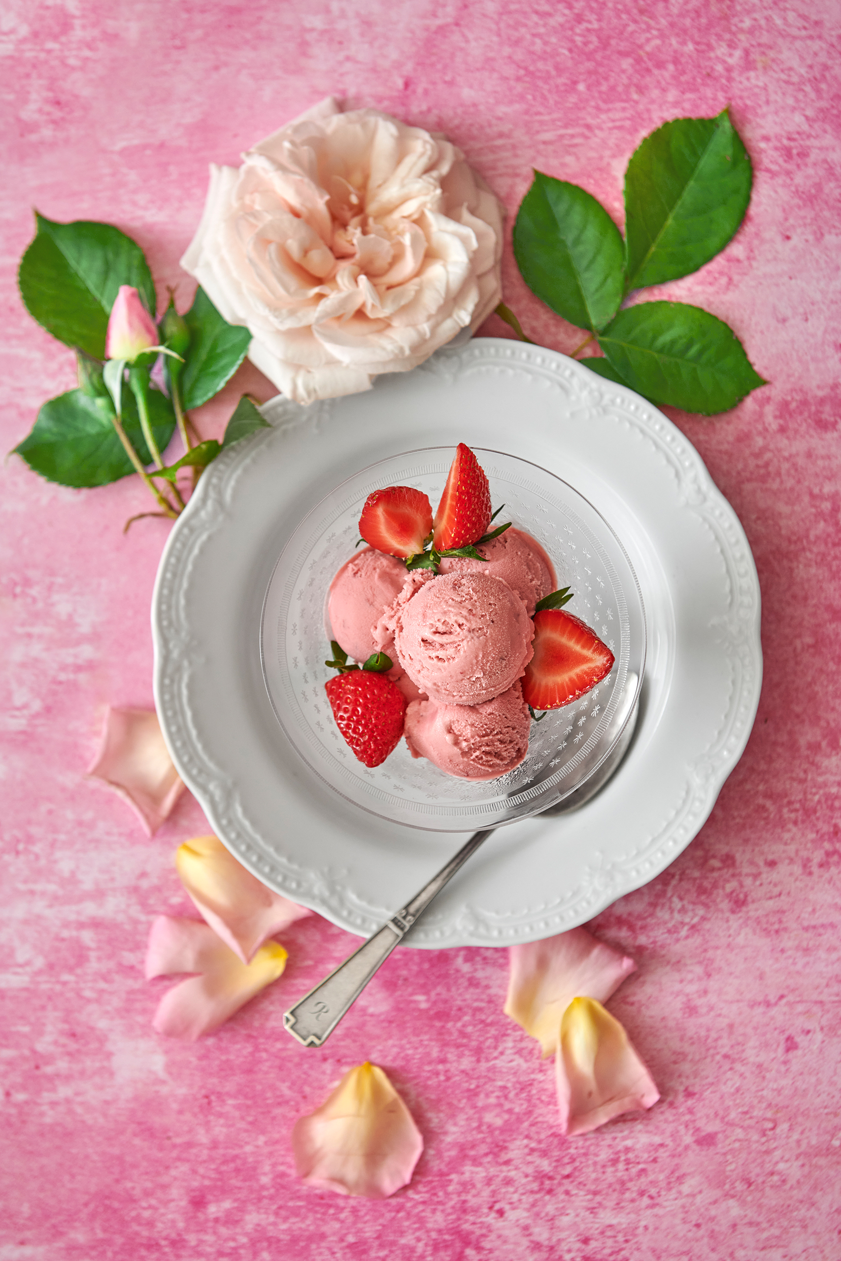 Ice-cream is one of the things I take the greatest pleasure in making - it is a beautiful way to capture the flavour of fruit when it is in the height of the season and at its peak. It would be impossible to pick a favourite but there is something about strawberry ice-cream that I find incredibly comforting and reminiscent of childhood.
