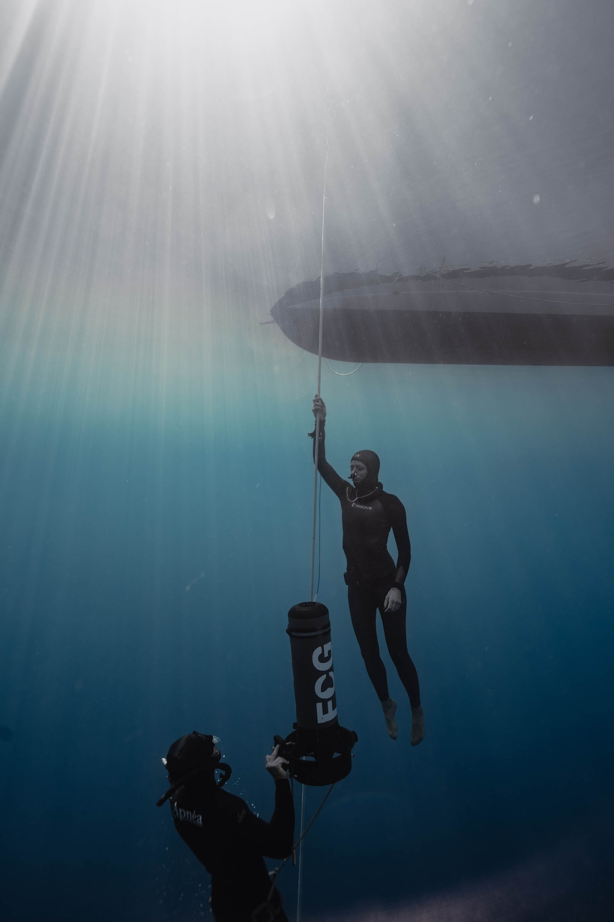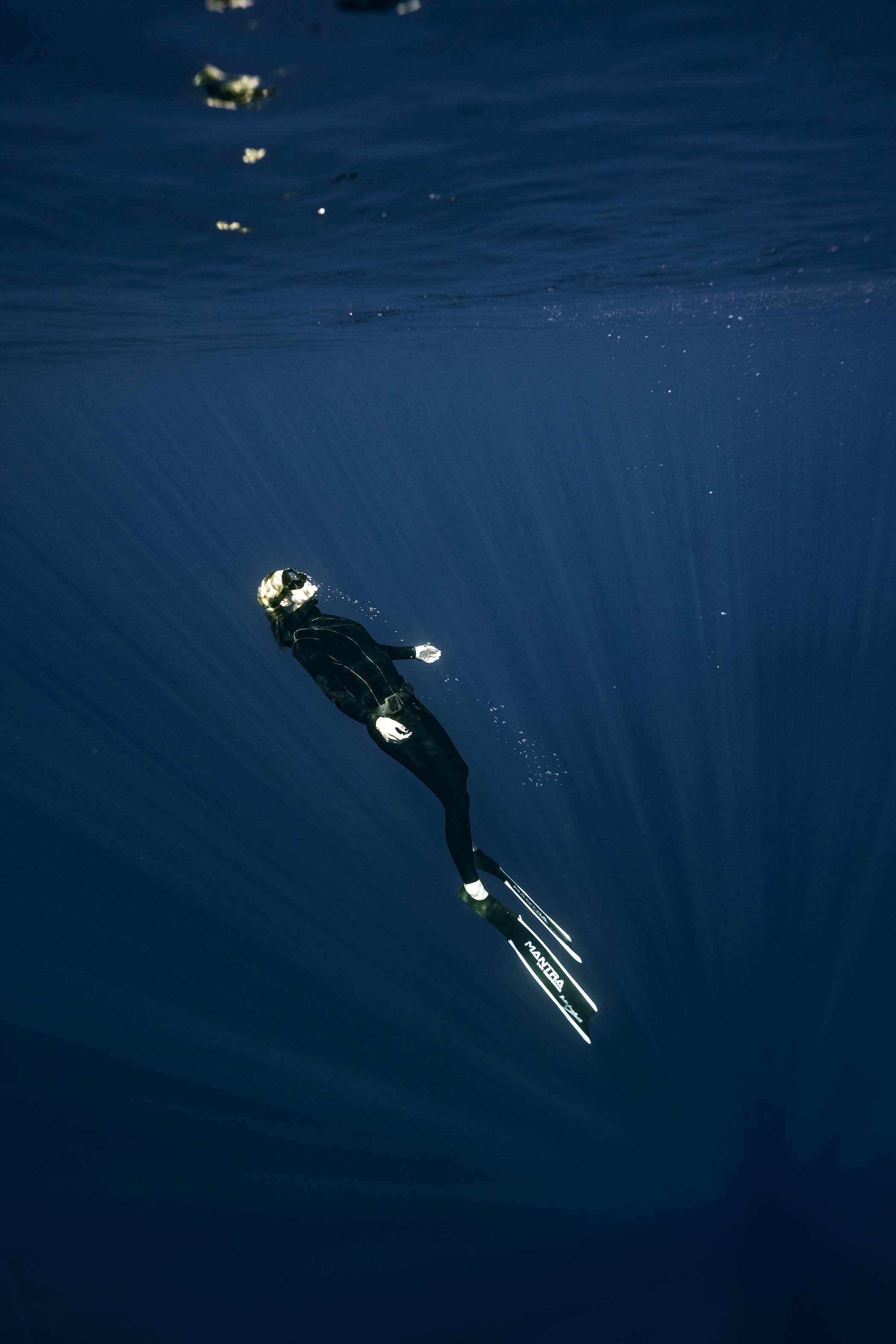 By 30 metres, your lungs have reduced to the size of a fist. You are more dense than the water. You start to sink at roughly one metre a second. This is the most meditative part of the dive. The freefall.