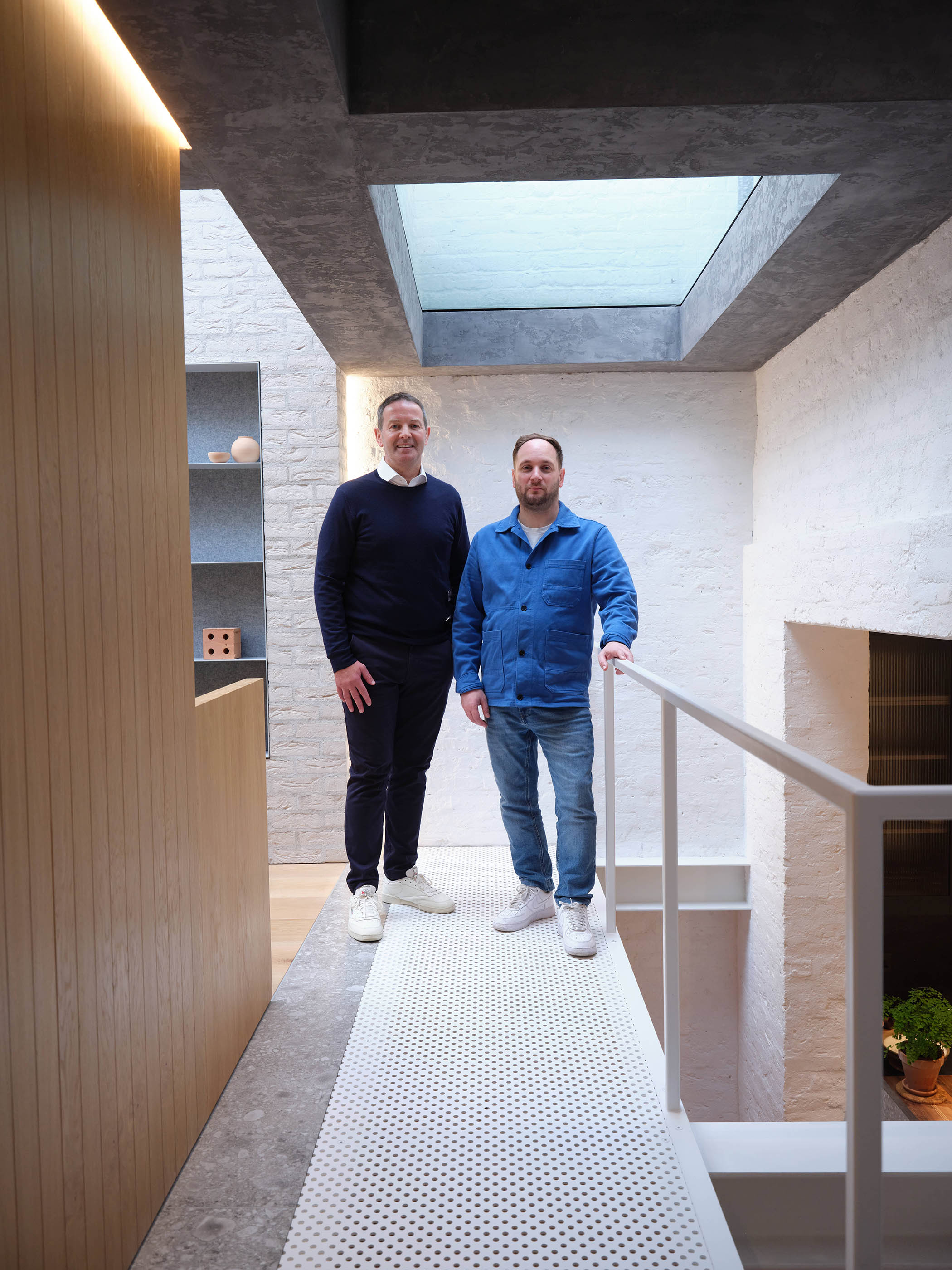 Meanwhile, the first-floor workspace – which overlooks the kitchen – feels more industrial, with white-washed bricks and heavy grey concrete. “It has a raw feeling,” says Edgley, “almost as if you are outside.”